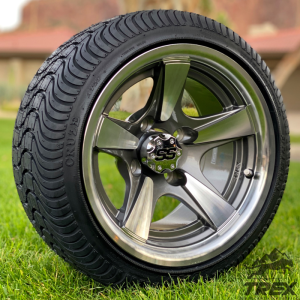 The TERMINATOR LP combo is the beautiful wheel and tire combo you have been looking for. Our 10” TERMINATOR Machined wheels come wrapped up nicely in Low Profile tires which are street legal (DOT approved) and Turf Safe. These tires will provide a smooth ride on the streets and paths or the fairways, while remaining gentle on grass.